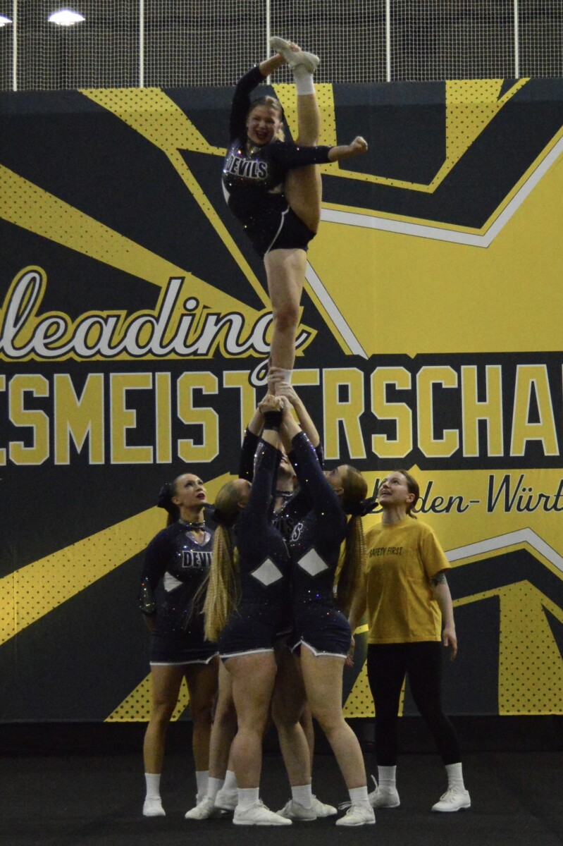 Die 12- bis 16-jährigen Junior Devils (Kategorie Junior Cheer All Female) präsentierten ebenfalls ein anspruchsvolles Programm und zogen das Publikum mit ihrem Cheer, einem gemeinsamen Ruf bestehend aus mindestens 12 Wörtern mit passenden choreografischen Gestaltungen, in ihren Bann. Kleine Wackler bei den Stunts blieben der Jury jedoch nicht verborgen. So landeten die Jugendlichen auf dem 7. Platz und sind motiviert, gemeinsam mit ihren Trainerinnen Lena Kirrmaier, Julia Vöhringer und Karina Wiesner die gewonnene Erfahrung zu nutzen, auf dem jetzigen Stand aufzubauen und an Sicherheit zu gewinnen.